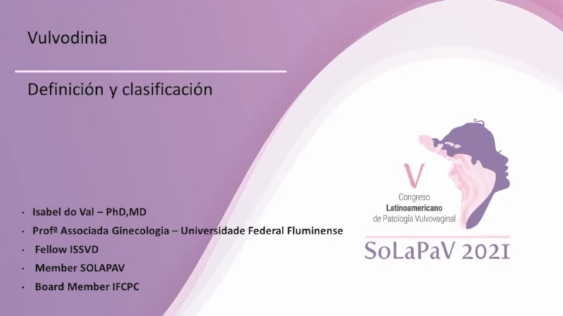 La ponencia nos presenta la definición de dolor Vulvar que se caracteriza por ardor asociado a la irritación, prurito, dolor o edema con duraciones entre 3 y 6 meses, así como los tipos de dolor vulvar de acuerdo con la ISSDV: Causa específica y Vulvodinia que se manifiesta sin cuadro clínico específico. Se presentan sus clasificaciones espontánea, provocada o mixta, también localizada